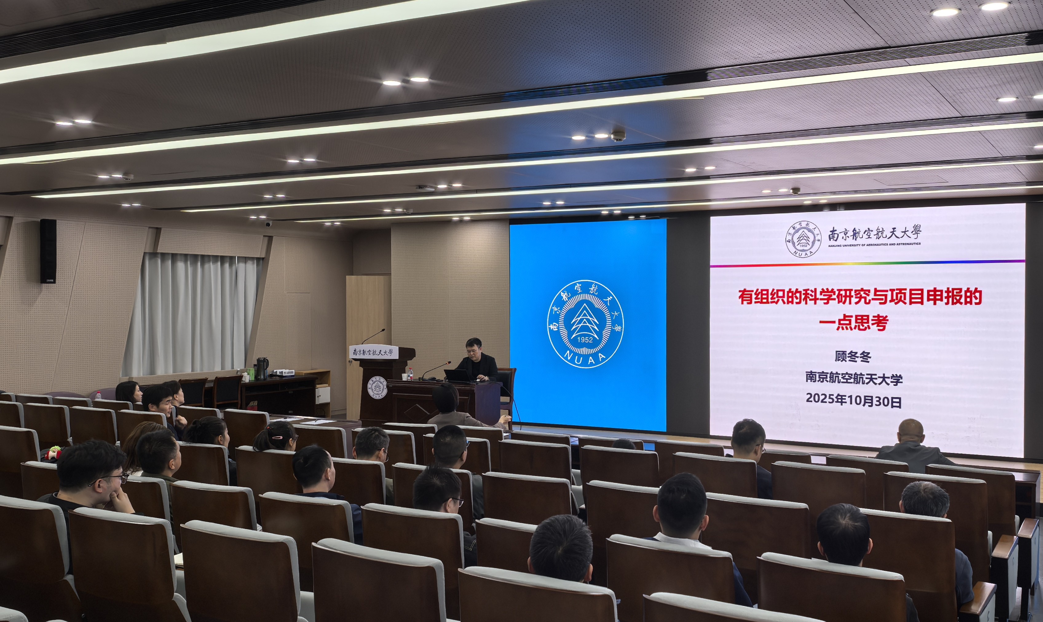 为做好学院2026年度国家自然科学基金项目申报组织工作,提高基金申报质量,10月30日,学院邀请了材料科学与技术学院院长顾冬冬教授来院作国家自然科学基金项目申报专题辅导会。学院领导、拟申报国基金项目老师、博士后、相关硕博研究生,以及科研办公室工作人员等40余人参加了本次辅导会。会议由航天学院副院长吴咏梅主持。